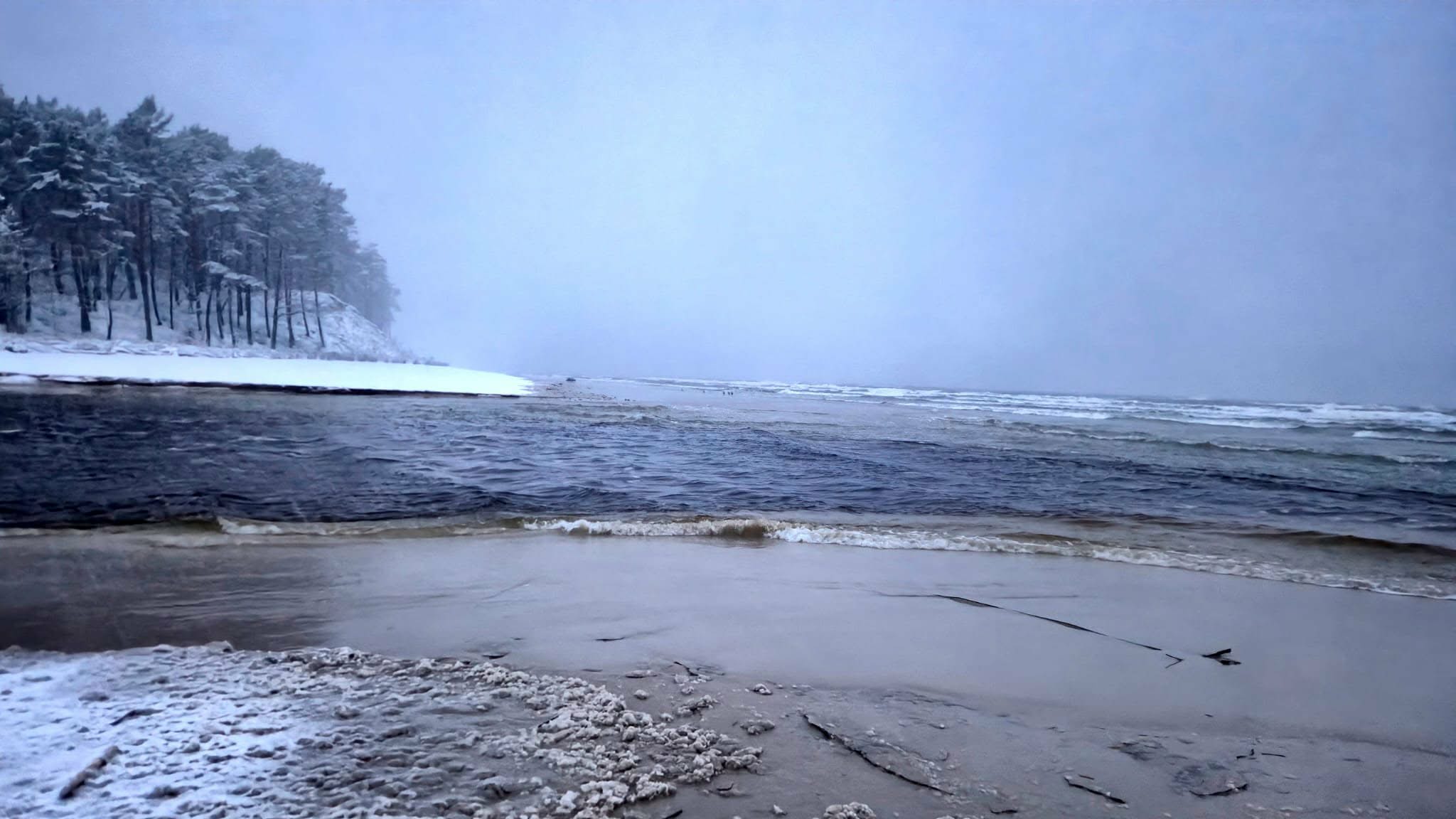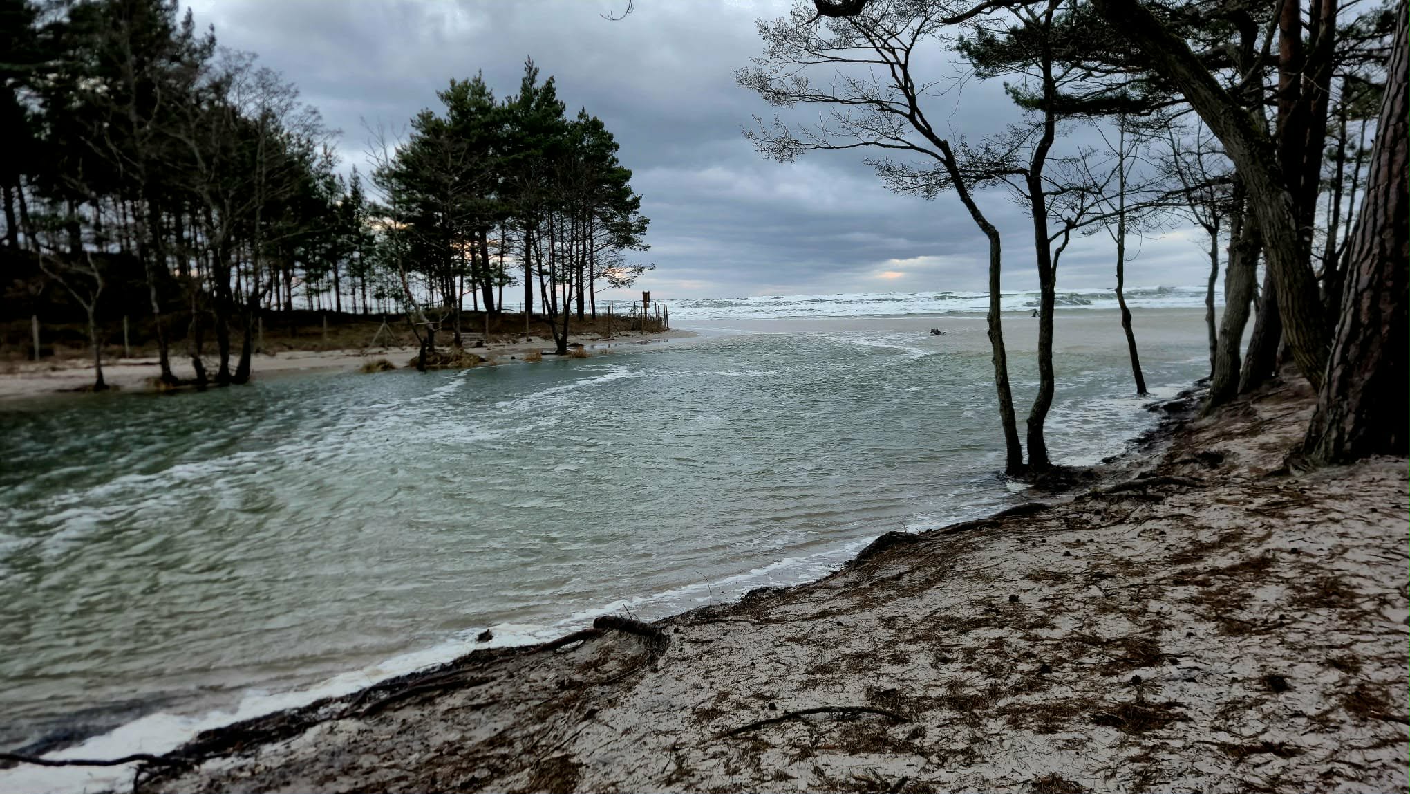 Zimowa Piaśnica wpada do Bałtyku