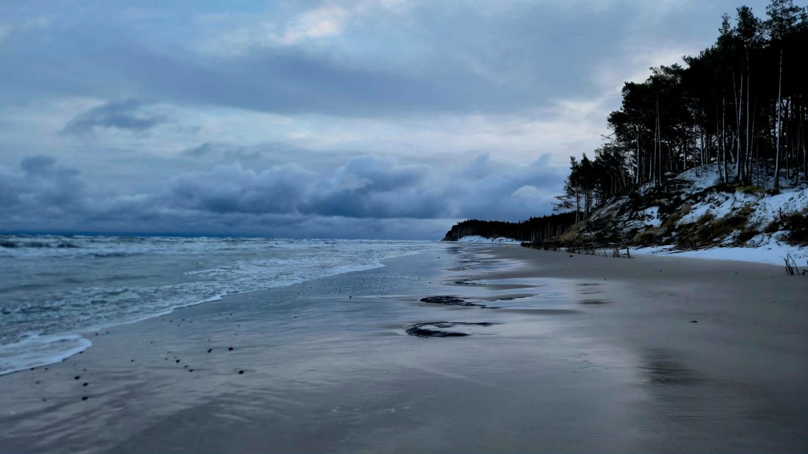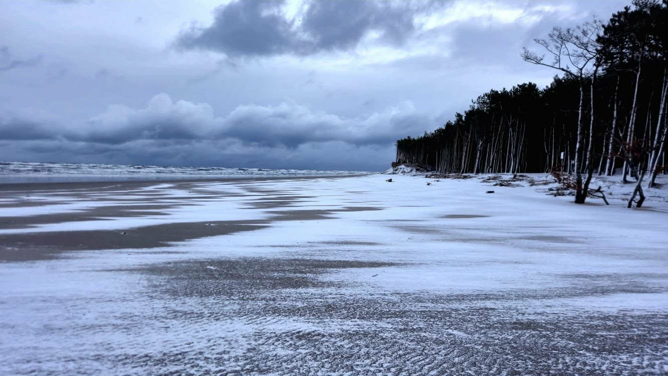 Śnieg na plaży Dębki – zimowy Bałtyk
